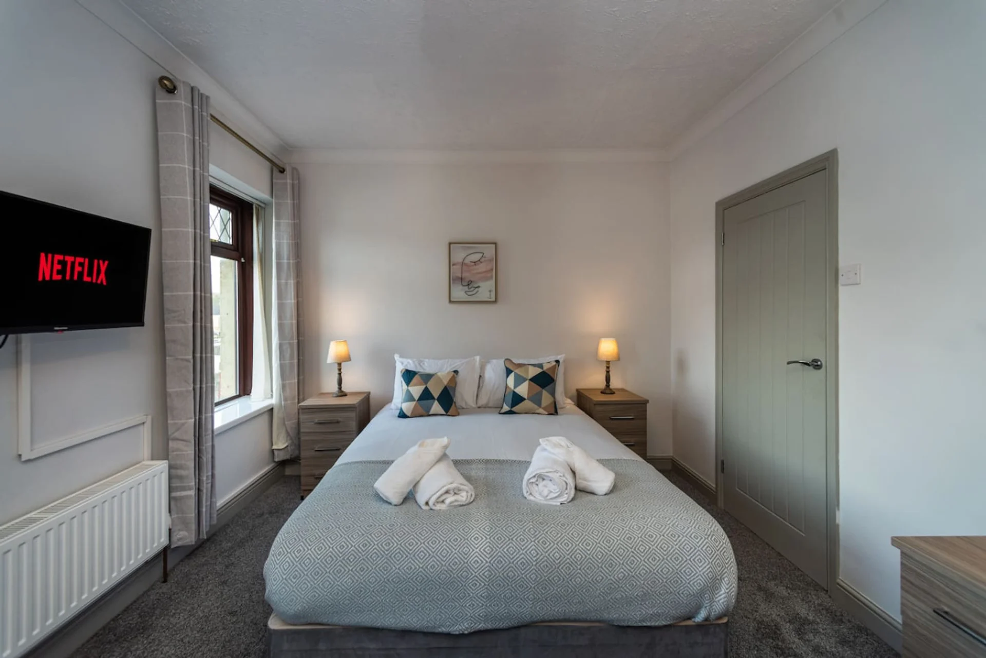 5 Bedrooms, Smart Tv's all round, Off road Parking, 2 bathrooms This home is ideal for large groups, or people who enjoy space. Enjoy this 3 storey home, with a fully equipped kitchen, with dishwasher for your convenience. For a group of up to 11 seeking space for a friends' weekend away, a family occasion, or for colleagues or contractors, this home offers Off-Road Parking: Smart TVs in Every Room: Entertainment at your fingertips. Spacious Living Areas: A living room with two sofas, a Smart TV, and dining for 8. Fully Equipped Kitchen: Includes a dishwasher all the essentials and direct access to a private patio garden. Comfortable Bedrooms: Flexible sleeping arrangements with a mix of King beds, doubles and singles. Bathrooms: Two in total Guests will have exclusive use of the entire property, including: All bedrooms: Ground floor twin room with two single beds & Smart TV Upstairs double room with a single and double bed, and Smart TV. Upstairs double room with a King bed and Smart TV. Upstairs twin room with two single beds & Smart TV Attic room with a double bed and Smart TV. Living room with two sofas and Smart TV. Fully equipped kitchen with dishwasher, dining for 8 and access to the patio garden. Bathrooms: 1 with a shower and the other with a bath. Off-road parking This home is entirely yours for the duration of your stay, ensuring complete privacy and comfort. The combination of convenience, space, and amenities makes it an excellent choice for your visit. We are available via call or message between 8 AM and 9 PM to assist with any questions or needs during your stay (hours may be reduced on Christmas Day and New Year’s Day). While we are here to offer advice and support if needed, we’ll remain in the background to ensure you can fully relax and enjoy your stay with minimal interruption This property is hosted and managed by KG Short Stay, a trusted team with a large portfolio of properties across South Wales. We pride ourselves on providing a professional and responsive service to ensure your stay is as smooth and enjoyable as possible. Guest Requirements: Before access is granted, guests are required to provide photographic ID via an online link, a valid phone number, and their home address in compliance with The Immigration (Hotel Records) Order 1972. House Rules: This is a NO PARTIES, NO SMOKING, and NO PETS property. CCTV and Noise Monitoring: For your security, there is CCTV at the front entrance to monitor arrivals. Additionally, the property has a noise-monitoring device (it does not record sound) to ensure respectful noise levels are maintained. Residential Area: This property is in a residential neighbourhood, so please respect the privacy and peace of the surrounding area. If you’re planning a gathering, we kindly ask you to choose a local pub or bar instead. Check-In and Check-Out: Check-in is between 4 PM – 9 PM. Please note that after 9 PM, customer service assistance may not be available. You may self-check-in after this time using the lock box, but support cannot be guaranteed. Check-out is by 10 AM. Photography Disclaimer: The listing photos were professionally taken before guests stayed in the property. While every effort is made to maintain the space, there may be some changes such as removed decorative items, minor wear and tear, or settlement dust if it’s been a few days since the last guest checked out. Friendly Note: This is not luxury accommodation but is designed for practicality, especially for those working or studying in the area. However, we’re confident you’ll enjoy the space too! Please be mindful that occasional encounters with friendly spiders or bugs can happen in UK homes. Should anything unusual arise, our team will address it promptly to ensure your stay remains comfortable.