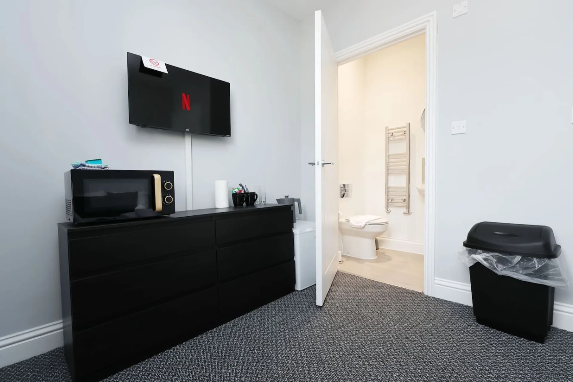 Perfect for commuters, travellers, or anyone seeking a modern and convenient space to stay, this room offers both comfort and practicality. Double Room- Double Bed Simple Amenities, Microwave, Fridge, Smart Tv En-suite bathroom Walking distance from Llanelli Train Station Looking for a cozy and convenient base in Llanelli? This studio offers: Comfortable Living Space: A well-designed studio perfect for two guests. En-Suite Bathroom: Enjoy the privacy and convenience of your own bathroom. Smart TV: Relax and unwind with your favorite shows. Kitchenette: Includes a fridge and microwave for light meal preparation. Prime Location: Situated right next to Llanelli Train Station, ideal for exploring the area or commuting. Nearby Attractions Located in the heart of Llanelli, this studio is close to: Millennium Coastal Park: Enjoy stunning coastal views, cycling, and walking trails. Llanelli Wetland Centre: A must-visit for nature lovers and bird watchers. Parc Howard Museum and Gardens: A charming spot to learn about local history and relax in peaceful surroundings. With local pubs, cafes, and restaurants just minutes away, you’ll have plenty of dining options to choose from. Guests will have exclusive access to the entire studio, which includes: A cosy living and sleeping area with a Smart TV. An en-suite bathroom for added privacy. A kitchenette with a fridge and microwave for light meal preparation. Please note that while the studio itself is entirely private and solely for your use, the main entrance to the building is shared with other residents. Once inside, your room offers complete privacy and comfort throughout your stay. We are available via call or message between 8 AM and 9 PM to assist with any questions or needs during your stay (hours may be reduced on Christmas Day and New Year’s Day). While we are here to offer advice and support if needed, we’ll remain in the background to ensure you can fully relax and enjoy your stay with minimal interruption This property is hosted and managed by KG Short Stay, a trusted team with a large portfolio of properties across South Wales. We pride ourselves on providing a professional and responsive service to ensure your stay is as smooth and enjoyable as possible. Guest Requirements: Before access is granted, guests are required to provide photographic ID via an online link, a valid phone number, and their home address in compliance with The Immigration (Hotel Records) Order 1972. House Rules: This is a NO PARTIES, NO SMOKING, and NO PETS property. CCTV and Noise Monitoring: For your security, there is CCTV at the front entrance to monitor arrivals. Additionally, the property has a noise-monitoring device (it does not record sound) to ensure respectful noise levels are maintained. Residential Area: This property is in a residential neighbourhood, so please respect the privacy and peace of the surrounding area. If you’re planning a gathering, we kindly ask you to choose a local pub or bar instead. Check-In and Check-Out: Check-in is between 4 PM – 9 PM. Please note that after 9 PM, customer service assistance may not be available. You may self-check-in after this time using the lock box, but support cannot be guaranteed. Check-out is by 10 AM. Photography Disclaimer: The listing photos were professionally taken before guests stayed in the property. While every effort is made to maintain the space, there may be some changes such as removed decorative items, minor wear and tear, or settlement dust if it’s been a few days since the last guest checked out. Friendly Note: This is not luxury accommodation but is designed for practicality, especially for those working or studying in the area. However, we’re confident you’ll enjoy the space too! Please be mindful that occasional encounters with friendly spiders or bugs can happen in UK homes. Should anything unusual arise, our team will address it promptly to ensure your stay remains comfortable.